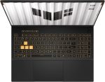 بدنهی این لپتاپ از همان زبان طراحی TUF بهره میبرد؛ یعنی استحکام نظامی، ظاهر گیمینگ و دوام بالا. لپ تاپ ایسوس Asus TUF FX608JHR i7 14650HX 16 512SSD 8 5050 WUXGA با رنگبندی خاص و کیبورد RGB نورانی، حس حرفهای بودن را به کاربر منتقل میکند. ابعاد نمایشگر با نسبت تصویر 16:10 و حاشیه باریک، فضای کاری و تجربه بصری وسیعتری فراهم میسازد.