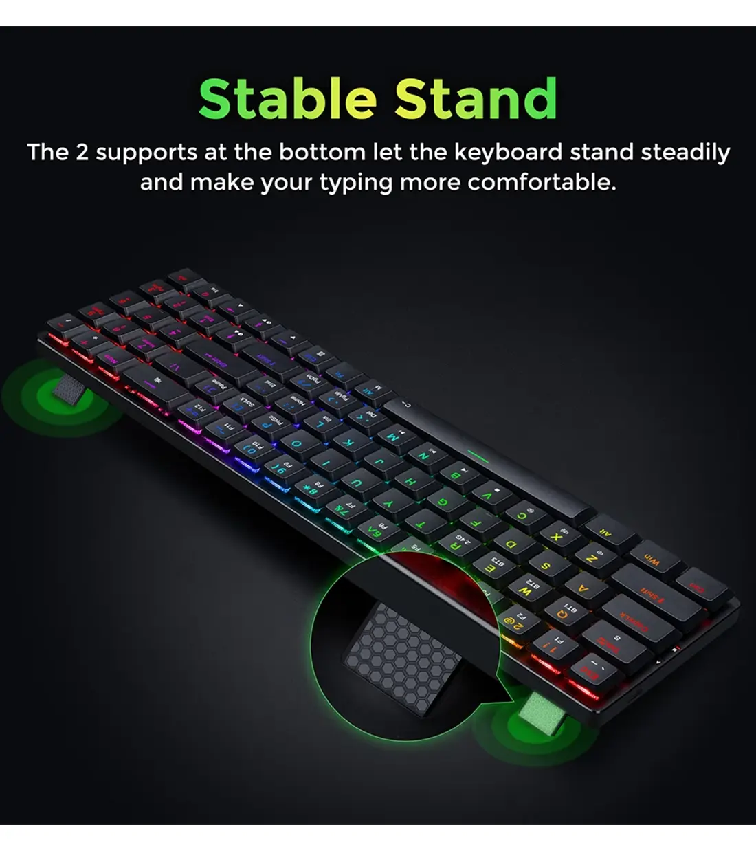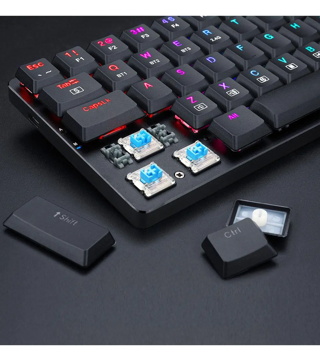 سوییچهای مکانیکال بهکاررفته در کیبورد بی سیم/باسیم مکانیکال گیمینگ ردراگون ASHE Pro K626P-KBS، عملکردی سریع، دقیق و با عمر طولانی ارائه میدهند. پاسخدهی سریع کلیدها، اجرای بدون خطای دستورات و حس تایپ حرفهای، از جمله ویژگیهایی است که گیمرها و تایپیستها را راضی خواهد کرد. همچنین پشتیبانی از Anti-Ghosting و N-Key Rollover تضمین میکند که حتی در فشردهترین لحظات بازی، هیچ فرمانی از دست نرود.