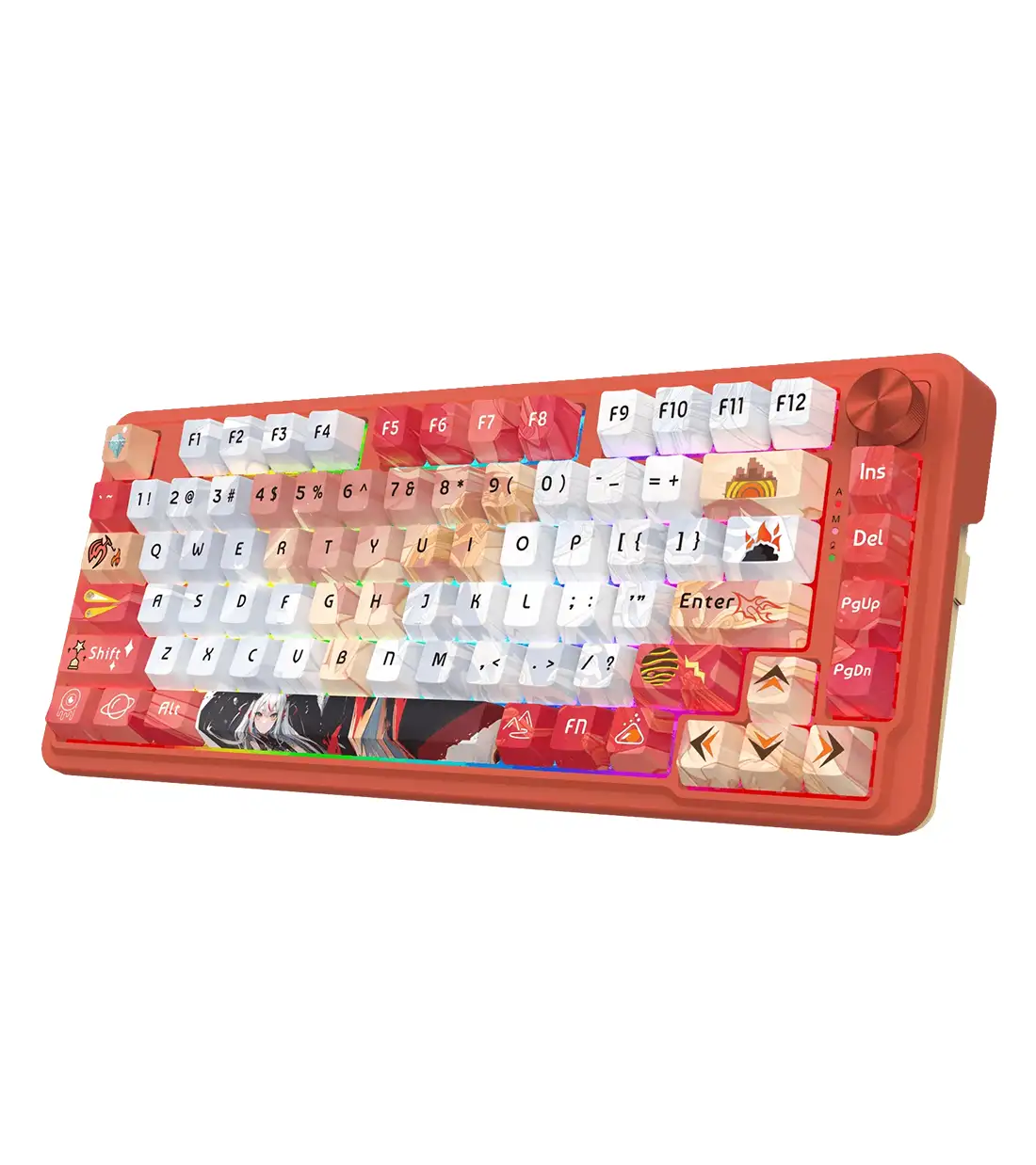کلیدها معمولاً از جنس PBT یا ABS با کیفیت هستند و دارای نوشتار شفاف و قابلخواندن حتی در نور کم میباشند. نورپردازی RGB به همراه افکتهای متعدد ظاهر جذاب و مدرنی به این کیبورد میبخشد.