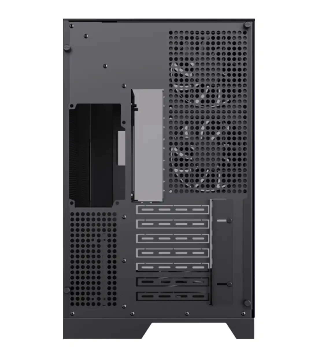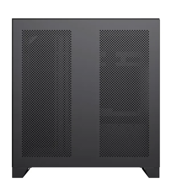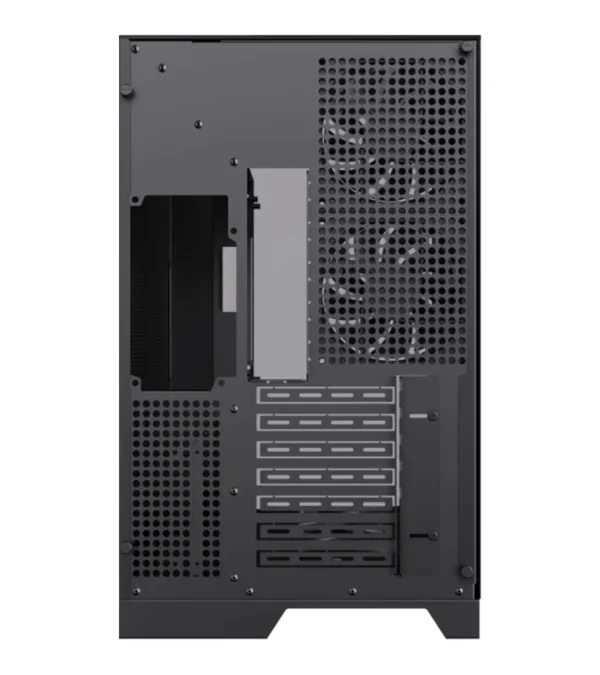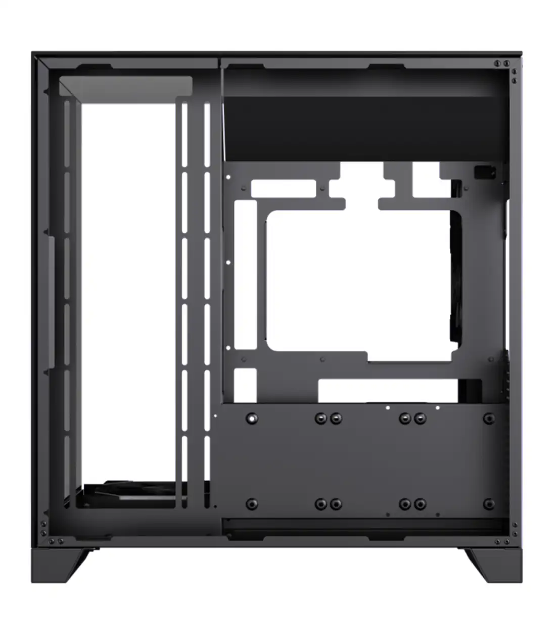 یکی از نقاط قوت کیس گیمینگ گیم مکس Infinity Pro Black طراحی دو محفظهای یا Dual-Chamber است. این ویژگی باعث میشود منبع تغذیه و کابلها در بخش جداگانهای قرار گیرند تا فضای داخلی سیستم تمیز و منظم باقی بماند. عمق مدیریت کابل ۴۵ میلیمتر فضای کافی برای عبور کابلها را فراهم کرده و نصب قطعات را آسانتر میکند.