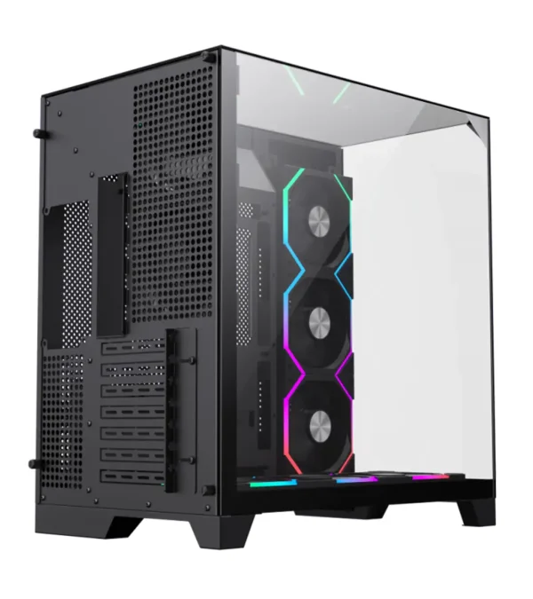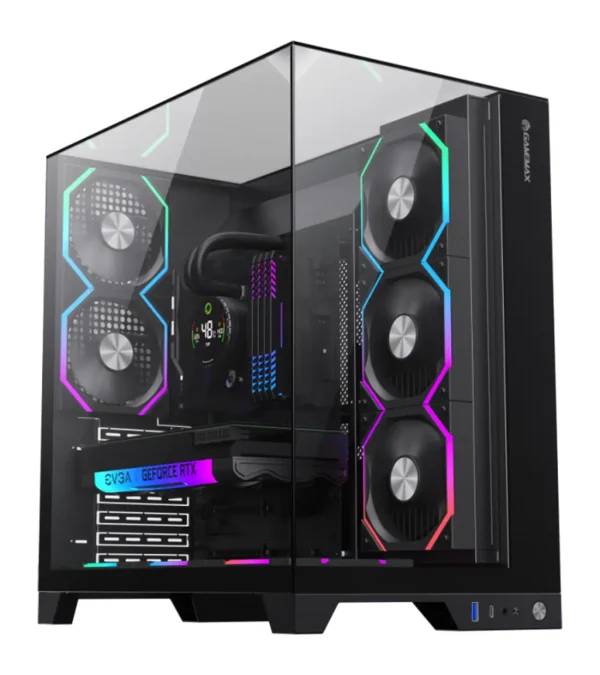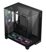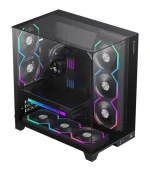 کیس گیمینگ گیم مکس Infinity Pro Black یکی از جدیدترین و زیباترین محصولات برند شناختهشده GameMax است که برای گیمرها و کاربرانی طراحی شده که به دنبال ترکیب بینظیر کارایی و ظاهر هستند. این کیس با طراحی سهطرفه شیشهای و نورپردازی ARGB جلوهای مدرن و حرفهای به سیستم شما میدهد و در عین حال فضای داخلی جاداری برای قطعات قدرتمند دارد.